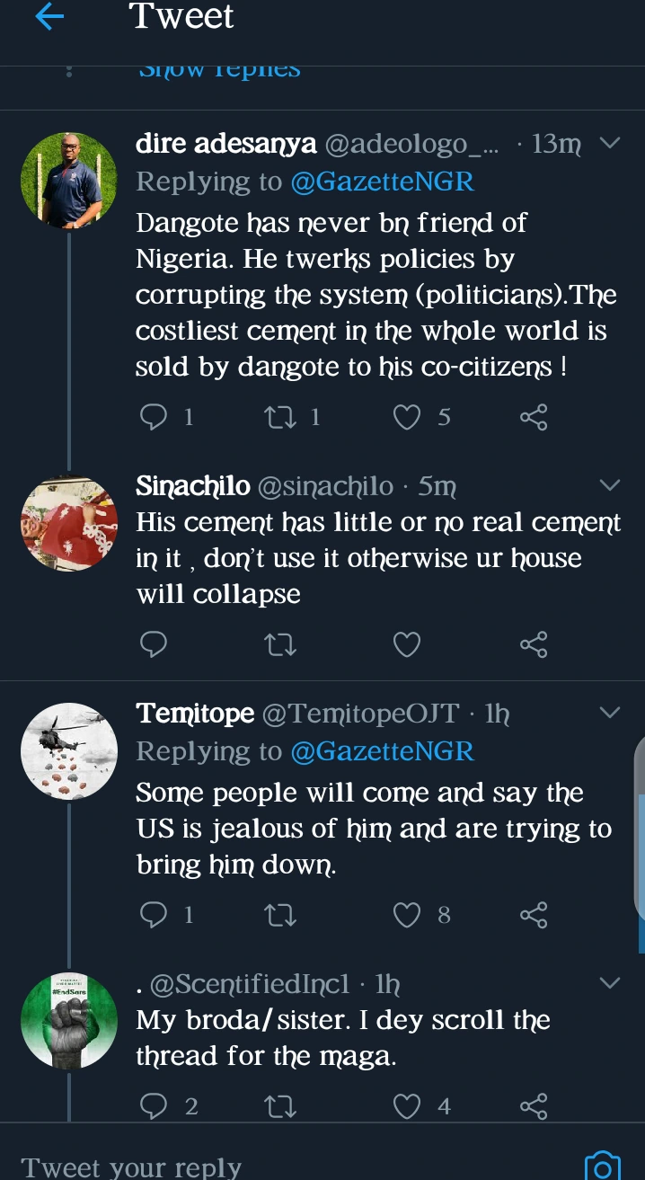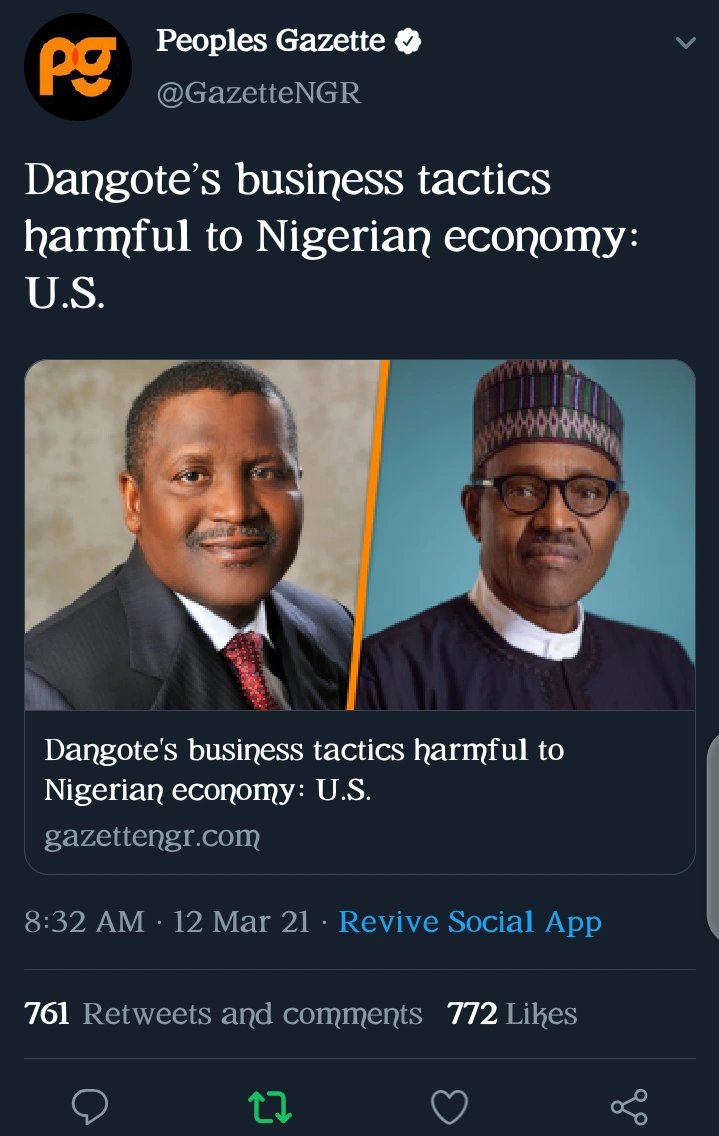 Dangote Group of companies is considered to be the largest conglomerate in the whole of West Aftica with over 30 thousand employees. Meanwhile, the United States of America has raised concerns over the the group’s business strategies, considering it to be disastrous to the Nigeria economy.