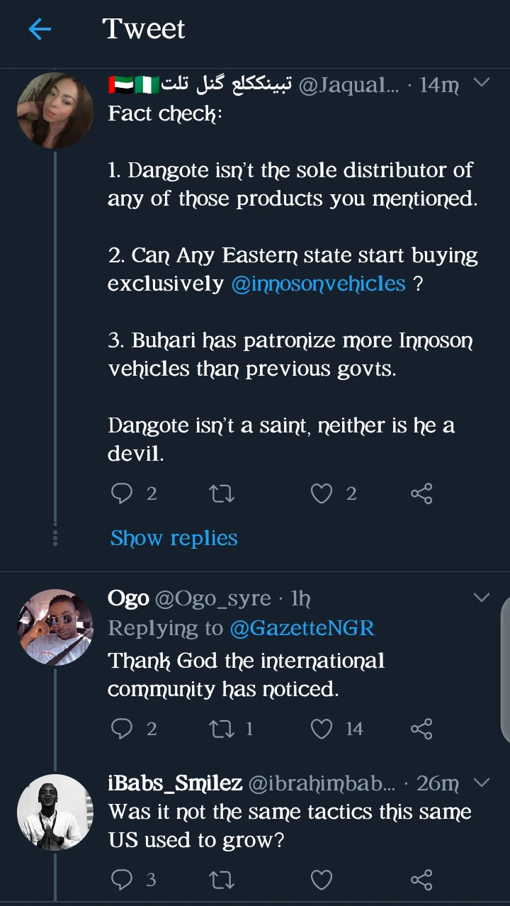 The US government also warned that Dangote’s model would likely be the one most emulated until it’s beggar-thy-countrymen contradictions become more apparent.” Further blaming the company for blocking investment that the it sees as major competitors, thereafter, noting that the Dangote model is harmful to Nigeria and America interest in the long run.