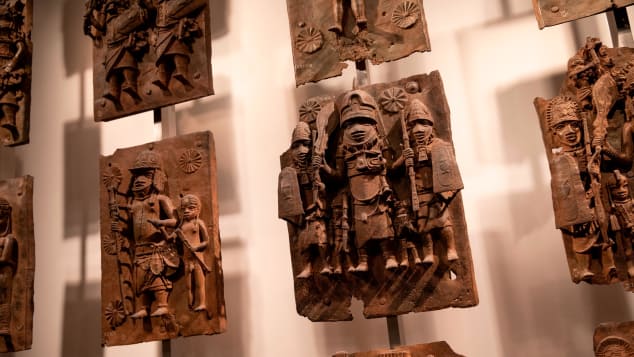 The famous Benin Bronzes are a collection of plaques and sculptures that once decorated the royal palace of the Kingdom of Benin.Dating back to the 13th century, these exquisite artworks include bas-relief images of dignitaries or warriors.They were influenced by the Ife civilization nearby, which produced life-sized bronze heads of the Ooni (king) and his queens.When Europeans first saw the Hellenic-style realism of the Ife sculptures they were “shocked” that Africans could produce such beauty and sophistication.The British liked the Benin bronzes so much they stole them during punitive raids in 1897 and have kept hold of them to this day.Some of the best specimens are displayed at the British Museum in London, the Louvre in Paris and Berlin’s Ethnological Museum.