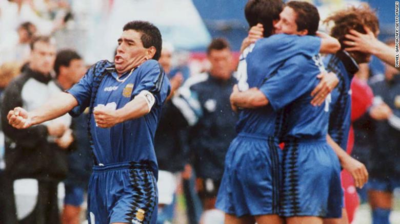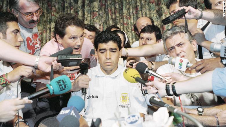 Photos: Soccer legend Diego MaradonaMaradona addresses the media after Argentina dropped him from the 1994 World Cup team. Just hours before the team’s final first-round game, it was revealed that he had tested positive for the use of ephedrine, a banned stimulant. In 1991, Maradona tested positive for cocaine use and was banned for the sport for 15 months.Hide Caption15 of 27