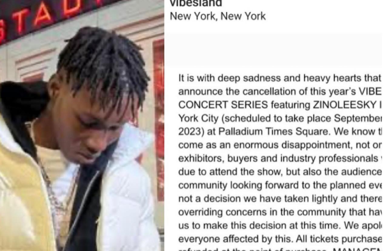 “It is with deep sadness and heavy hearts that we announce the cancellation of this year’s VIBESLAND CONCERT SERIES featuring ZINOLEESKY live in New York City (scheduled to take place September 30th,