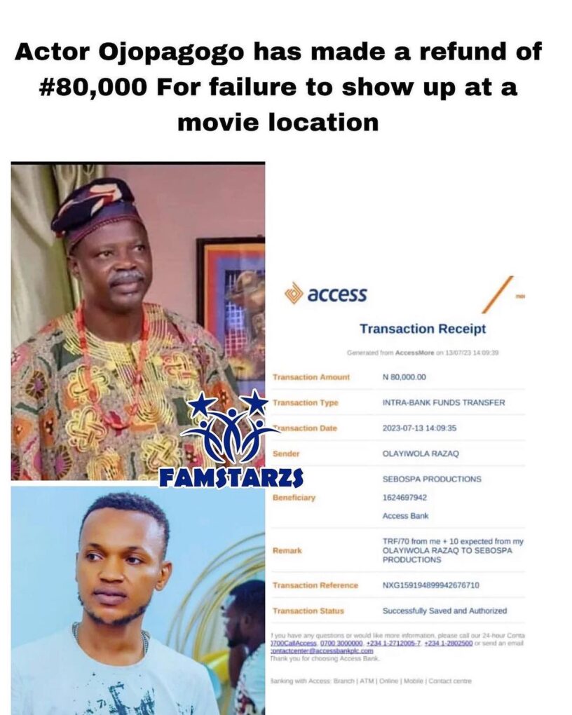 Veteran Nollywood actor Rasak Olayiwola, popularly known as Ojopagogo and his wife, Moji Afolayan, have bowed to pressure as they refund the 80 thousand naira charged for a full movie.