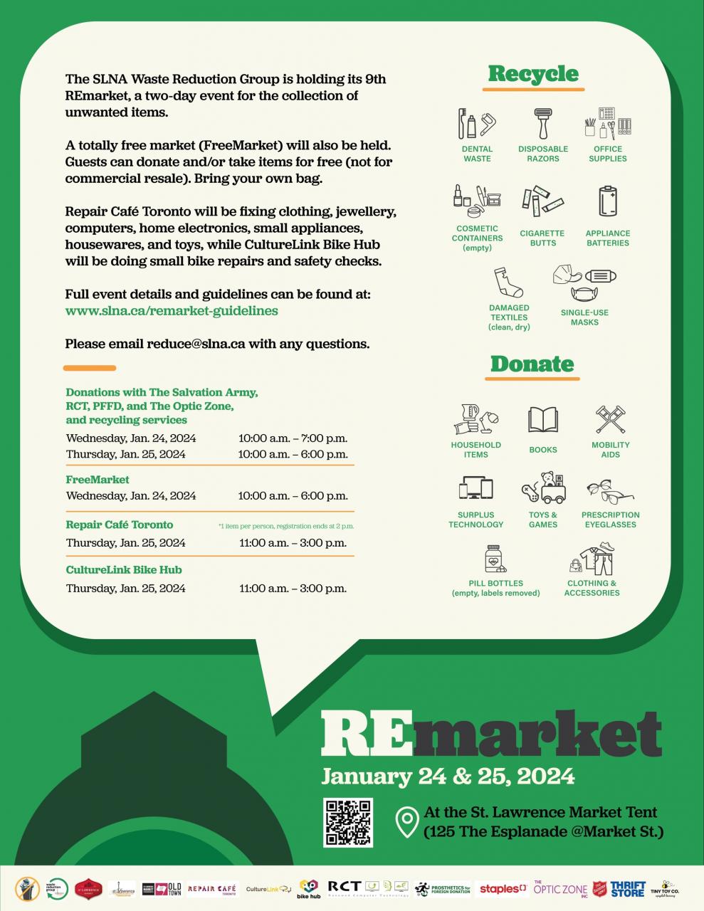 REmarket takes place on Wednesday, Jan. 24 from 10 a.m. to 7 p.m. and Thursday, Jan. 25 from 10 a.m. to 6 p.m. in the temporary tent at St. Lawrence Market. And while you’re grabbing your free stuff, be sure to donate if you can