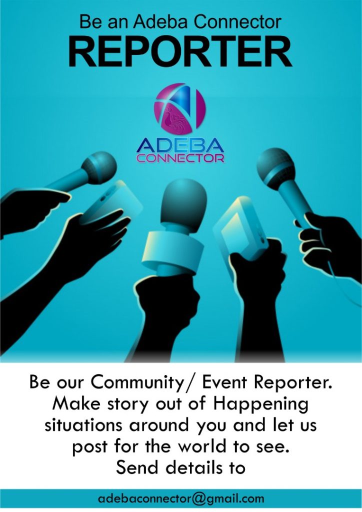 You want to share a story with us? Do you want to advertise with us? Do you need publicity/live coverage for product, service, or event? Contact us on WhatsApp +16477721660 or email Adebaconnector@gmail.com